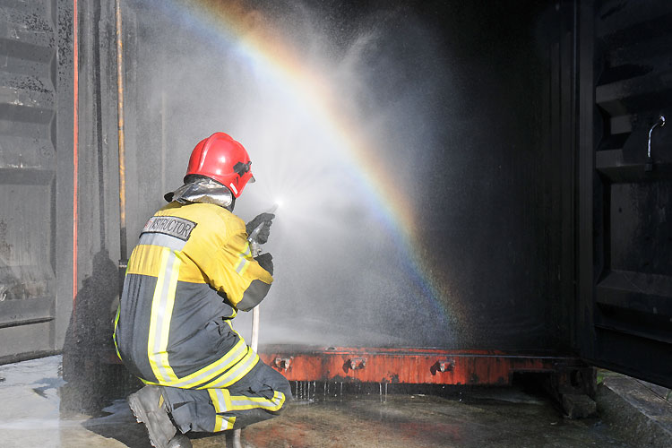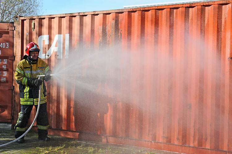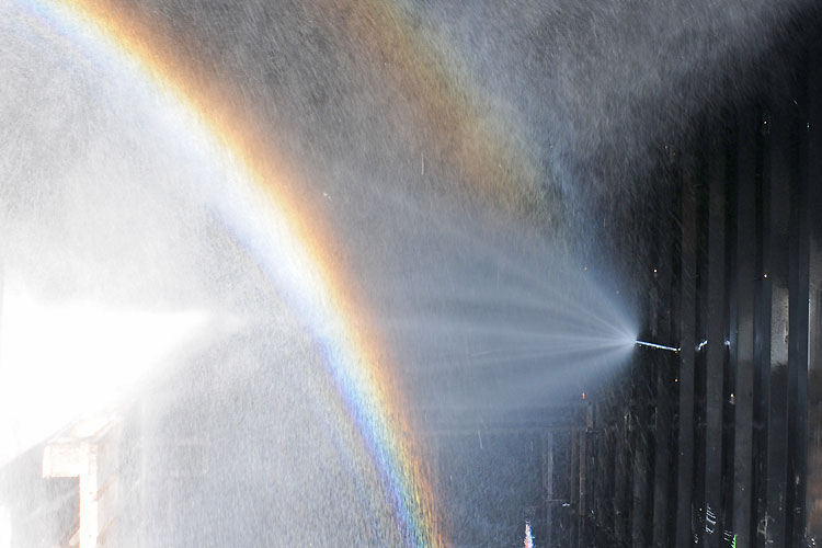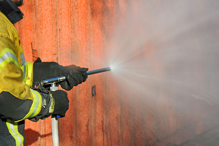 In thermisch hoch belasteten Gebieten dient der Fognail als Hydroschild zum Schutz der Einsatzkräfte.